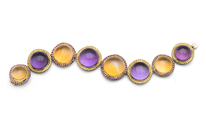 The brand creates platinum and 18-karat yellow, white and rose gold pieces with precious and semi-precious colored gemstones and diamond accents. Offering necklaces, rings, bracelets and earrings, retail prices range from $5,000 to more than $25,000.