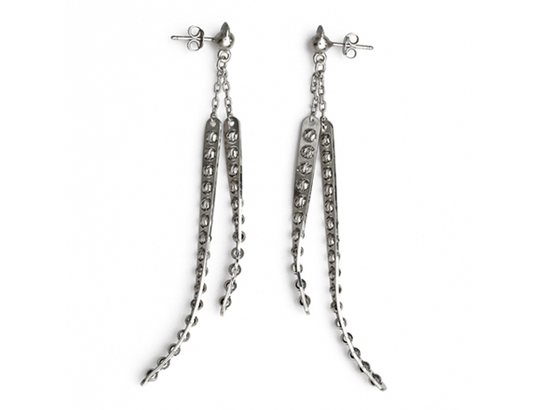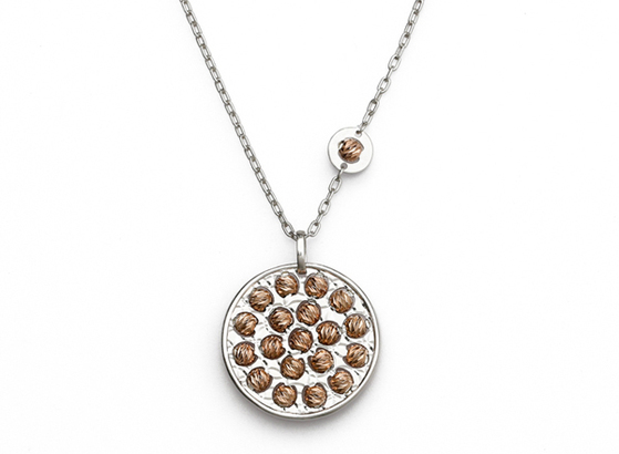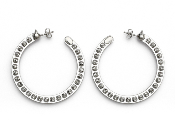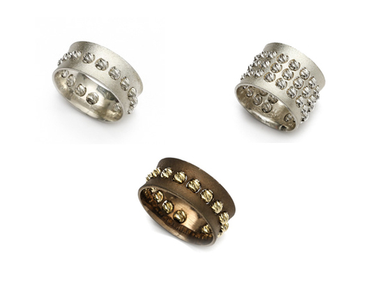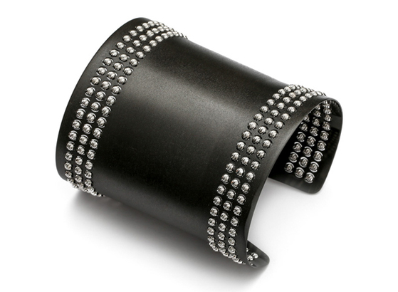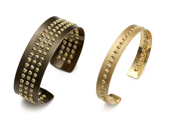 Athomie’s collection features silver jewelry, both as is and plated in 18-karat yellow, rose and “chocolate” gold. Ear cuffs, drop earrings, bangles, cuffs and necklaces are among the pieces offered, most adorned with diamond-cut beads that rotate 360 degrees, giving texture and dimension to the jewelry.