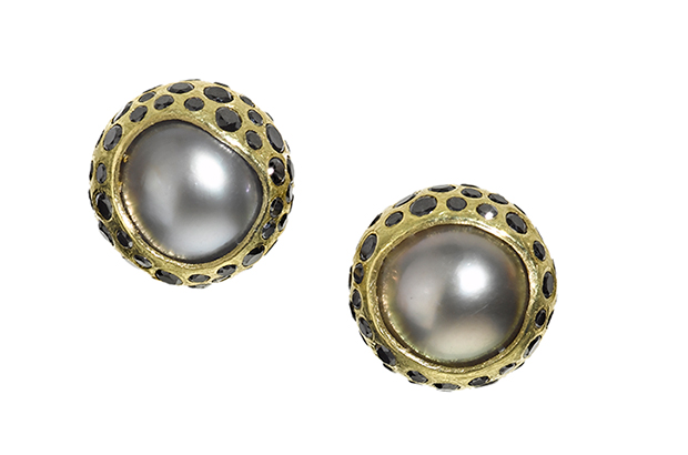 Aluminum. From Todd Reed’s first pearl collection, these 18-karat yellow gold earrings feature Tahitian pearls and black brilliant cut diamonds ($16,280).