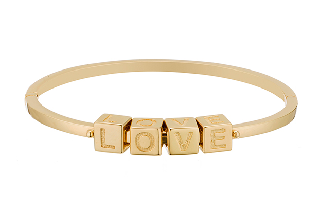 New brand Le Bloc’s line of pieces that can be personalized includes this “love” bracelet in 14-karat yellow gold. It retails for $2,785. LeBlocJewelry.com