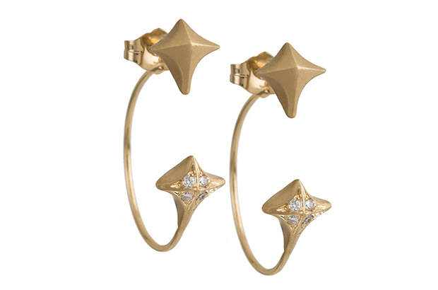Fantaci made these “Estrella” backwards hoops featuring diamonds set in 14-karat yellow gold. They retail for $1,700. MichelleFantaci.com
