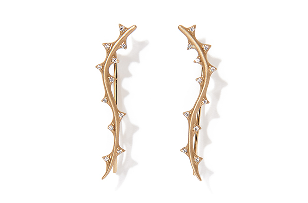 Michelle Fantaci’s thorn vine earrings feature diamonds in 14-karat yellow gold. They retail for $1,750. MichelleFantaci.com