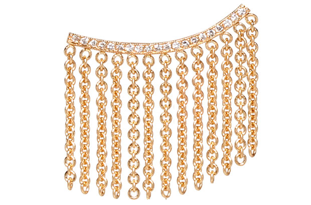 Zoe Chicco’s 14-karat white gold “Mohawk” curved bar ear climber with fringe has .10 carats of diamonds ($925). ZoeChicco.com