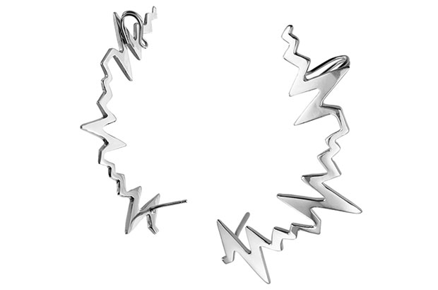 Designer Delphine Leymarie’s “Amour Heartbeat” earcuff follows the outline of the ear. They are sold individually, and the buyer can specify right or left ear. The cuff is available in sterling silver ($195) or 18-karat rose and yellow gold ($1,139).DelphineLeymarie.com