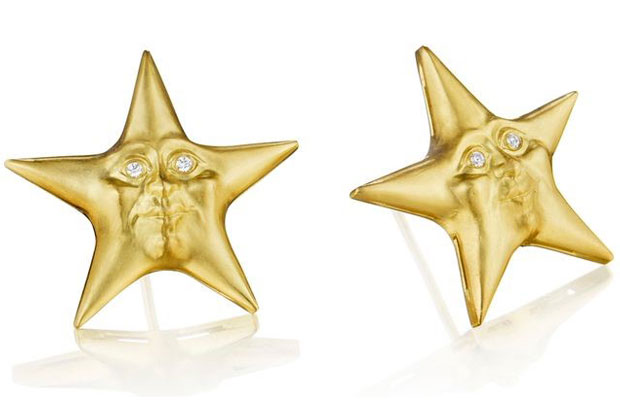 These star-shaped earrings by designer Anthony Lent are 18-karat yellow gold with diamond eyes ($2,750). AnthonyLent.com