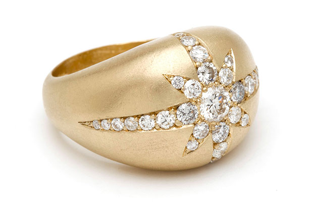 This domed starburst ring in 14-karat matte yellow gold with 0.99 carats of diamonds retails for $6,270. SofiaKaman.com