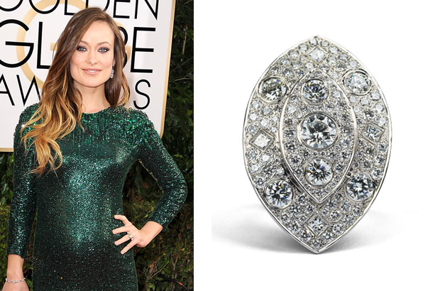 As has been the trend at red carpet events in years past, elaborate and vibrant cocktail rings were common, and most often featured a large center stone with pavé accents.