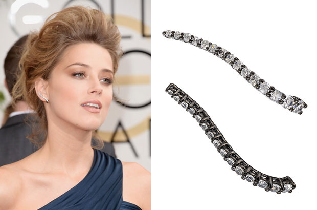 Actress Amber Heard donned Graziela Gems’ black rhodium sterling silver and zircon “Wave” ear cuffs ($360).