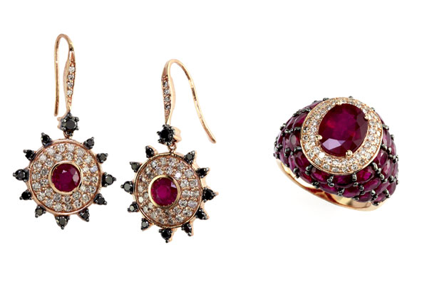 American Hustle’s Amy Adams donned yellow gold, diamond and ruby jewelry by Lorraine Schwartz.