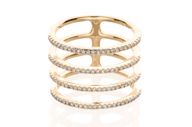 Elsa Pataky of Fast & Furious 6 accessorized with EF Collection’s 14-karat gold and diamond “Multi Spiral” ring ($1,850).
