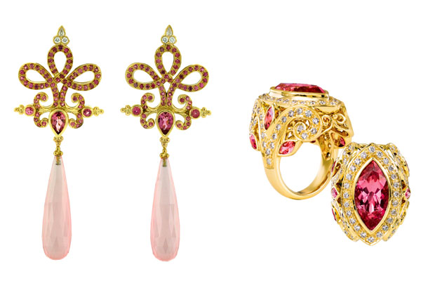 Garcelle Beauvais of the USA series Necessary Roughness attended the InStyle and Warner Bros. Golden Globe after-party in Paula Crevoshay’s rose quartz, tourmaline and diamond earrings ($25,350) and tourmaline and diamond ring ($31,950).