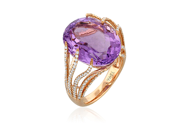Yael Designs added the pieces to multiple collections including “Lyra,” a cosmos-inspired line that accents colored gemstones with pavé diamonds, “Serendipity,” which highlights vintage-inspired rose- cut faceted emeralds of rare quality, and the “Pacifica” line of tanzanite jewelry.