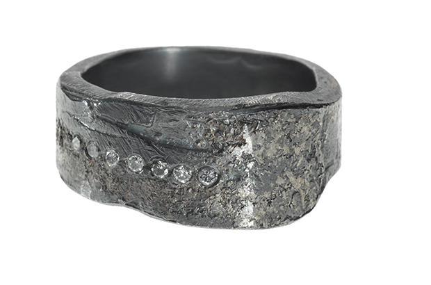 Palladium sterling silver ring with patina finish and gray brilliant-cut diamonds ($1,540)