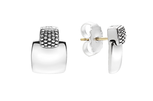 These sterling silver square earrings, which are a smaller version of the large clip earrings, are made with posts and retail for $195.