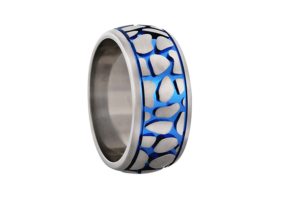 Cast gray titanium band with recessed anodized titanium accents ($339)