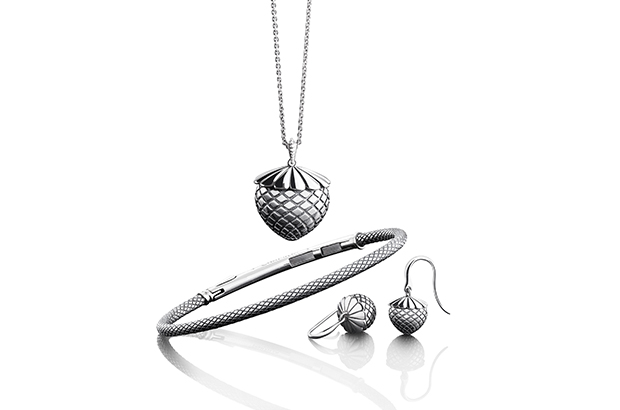 Chamilia will showcase its “Connections” lattice pattern, which will launch in the fourth quarter. Shown here at the top is the Chamilia “Fruitful” pendant with a berry silhouette capped with a rosette motif that appears in other pieces in the collection ($225); the Chamilia “Connections” sterling silver bar bracelet ($95); and the coordinating “Fruitful” earrings ($65). Booth #B3323