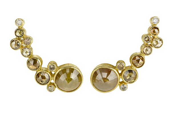 Other ongoing trends that have been prevalent prior to the shows, and continued strong during market week, included the use of geometric shapes as well as ear cuffs, climbers and jackets. There was also stackable jewelry, most often see in rings but also in smaller, daintier necklaces and bangles.