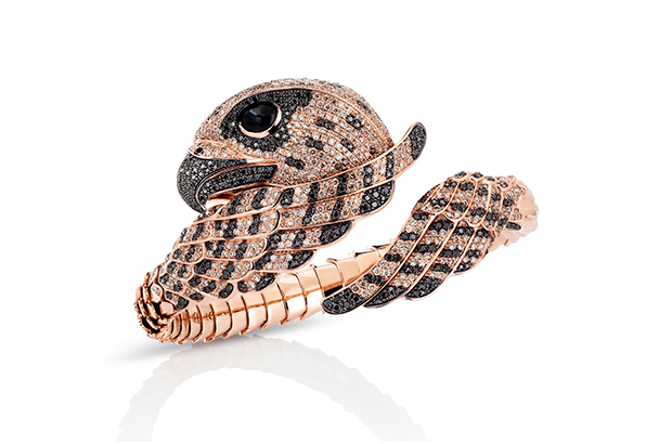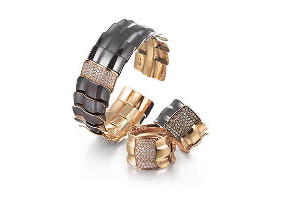 Garavelli Aldo. These pieces are from the brand’s new Drago collection, which celebrates its 95th anniversary and features 18-karat gold bracelets and rings set with diamonds and a bright, micro-ceramic finishing (bracelet, $11,500; rings, $5,900).
