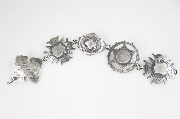 Shields, swags, medals and crests are wonderful ways to spruce up a contemporary look--they add a regal note to every bracelet stack and layered necklace look.