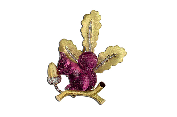 It's just a squirrelly thing that some folks like these critters, like this one from Gumuchian in 18-karat gold with diamonds and beautifully carved tourmaline ($17,000). gumuchian.com