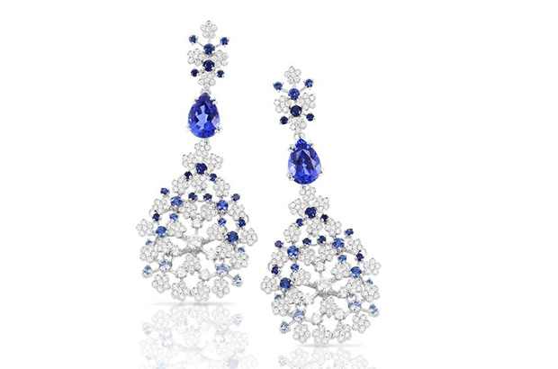 These 18-karat white gold earrings from Pasquale Bruni offer tanzanite, sapphires, and white diamonds ($31,020). pasqualebruni.com