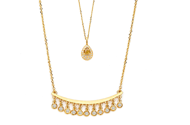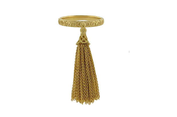We are seeing sexy, swingy, fringy details on all kinds of designs, from simple earrings to major necklaces. We’re talking tassels, full sweeps and micro-drapes in metal and stone. It’s fun and flirty and the movement is definitely eye-catching.