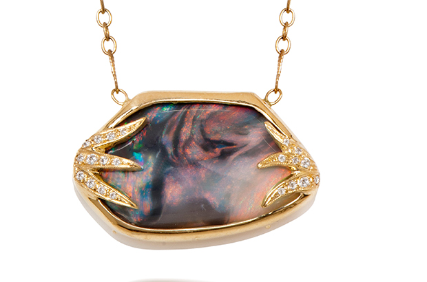 Just Jules' 14-karat hand-fabricated pendant featuring Lightning Ridge opal encased in diamond "flames" ($2,000)justjules.com