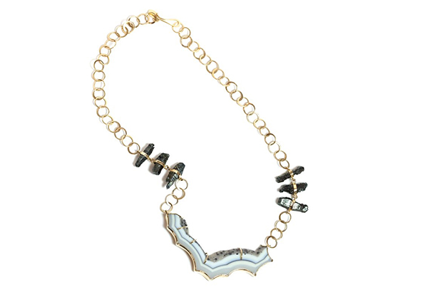 melissajoymanning.com' filename='Melissa Joy Manning's one-of-a-kind 14-karat yellow gold and sterling silver freeform necklace is made with raw hematite crystals and white agate druzy ($5,525). melissajoymanning.com' width='1104' presentation='gallery'> 'Melissa Joy Manning's one-of-a-kind 14-karat yellow gold and sterling silver freeform necklace is made with raw hematite crystals and white agate druzy ($5,525). melissajoymanning.com'