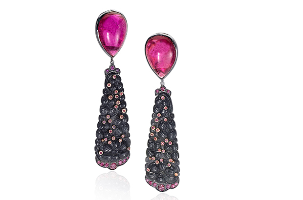 babetteshennan.com' filename='Babette Shennan's one-of-a-kind jade carvings are offset by bright rubellite to create earrings that catch the light just right ($39,000). babetteshennan.com' width='1104' presentation='gallery'> 'Babette Shennan's one-of-a-kind jade carvings are offset by bright rubellite to create earrings that catch the light just right ($39,000). babetteshennan.com'