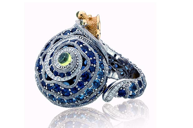 Snails also are a common motif in Soldier’s work, and one he has employed recently in his platinum pieces; he uses the mollusk as an allegory for slowing down and enjoying life.