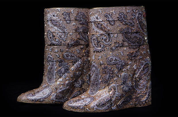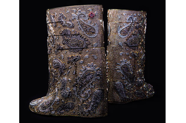 The boots were a collaboration between a two Antwerp-based companies. Diarough/UNI-Design provided the diamonds and luxury label and A.F. Vandevorst came up with the design for the shoes.