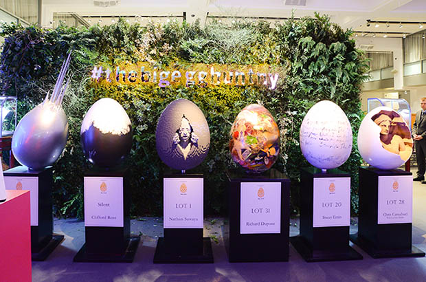 Also in New York was the Fabergé Big Egg Hunt auction, which took place Tuesday at Sotheby’s. The auction offered 36 of the more than 260 giant artist-designed Fabergé’s eggs to raise money for charities Studio in a School and Elephant Family.
