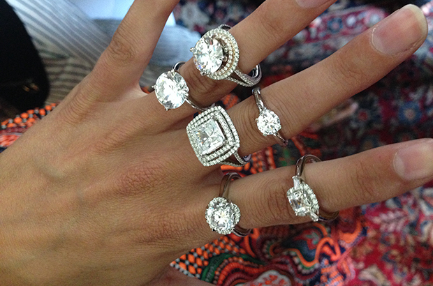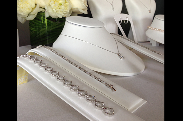 Fashion designer Monique Lhuillier, who launched a fine jewelry brand sold exclusively on Blue Nile in recent years, showcased her company’s latest designs at the NoMad Hotel penthouse in New York Thursday, surrounded by jewelry editors and bloggers.