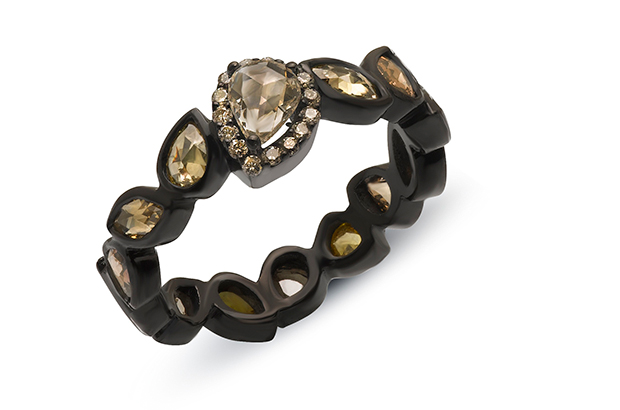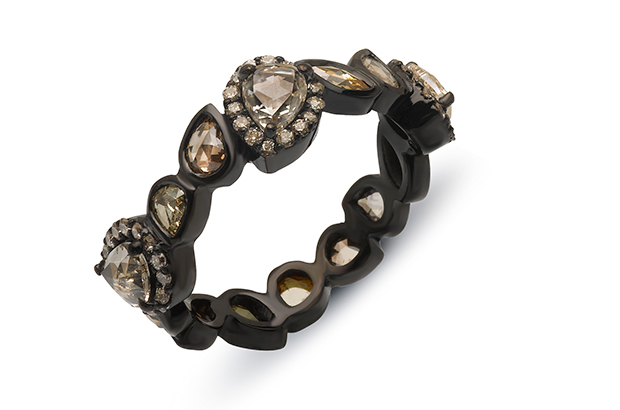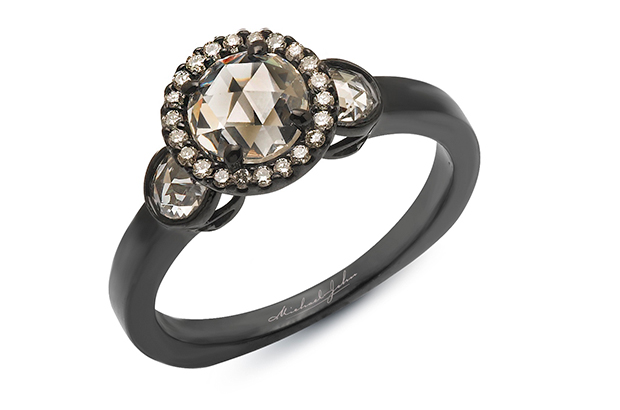 When it comes to working in alternative metals, many designers opt for an already-existing material but Michael Hezar of Michael John Jewelry created his own: a gold, ceramic and rhodium mixture he put to use in his Déjà Vu collection.