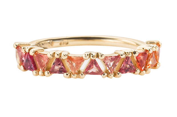 The unique look of her eponymous brand speaks to today’s millennial consumer looking for something different, especially bridal clients. Mociun also said that her brand has been moving more upscale recently, as she works with higher quality stones and craftsmanship to help set it apart.