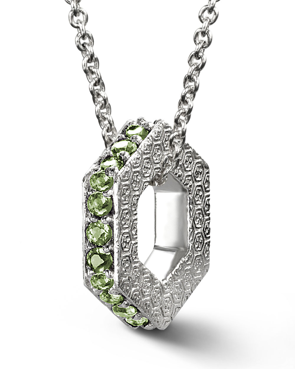 This peridot pendant is from Bcouture’s Keepsakes collection of birthstone jewelry. It is sterling silver and retails for a total of $125 (the chain is $50 and each birthstone pendant is priced at $75).