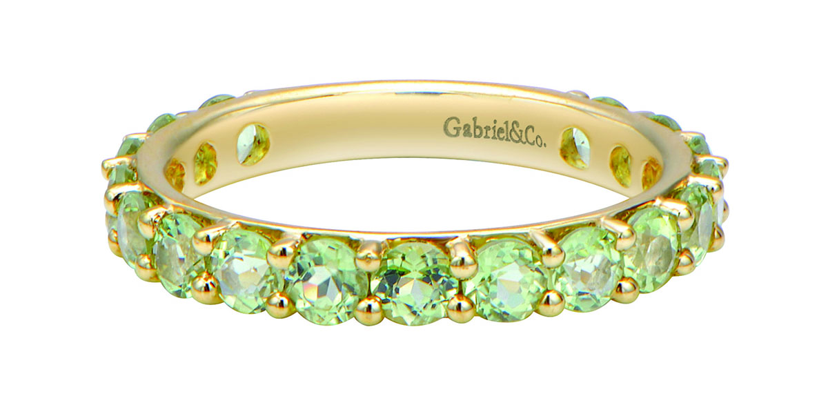 Gabriel & Co.’s 14-karat yellow gold and peridot stackable ring ($430)
