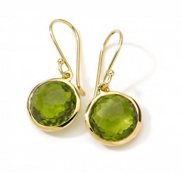 These 18-karat yellow gold Mini Lollipop earrings set with peridot are from Ippolita ($650).