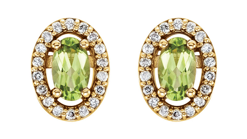 Stuller’s 14-karat yellow gold, peridot and diamond stud earrings ($639)