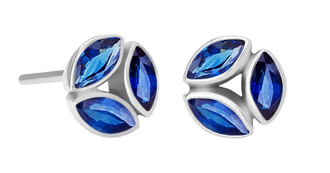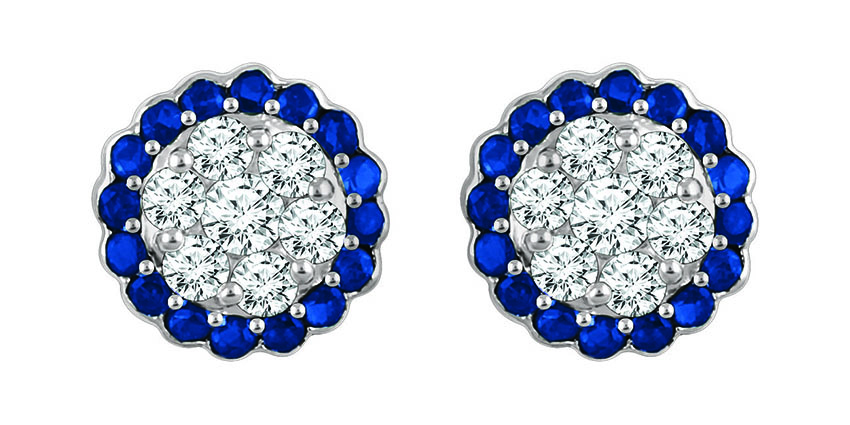 Stuller’s blue sapphire and diamond studs in 14-karat white gold retail for $1,995.