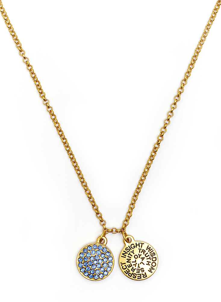 This necklace is new in Chrysalis’ Good Fortune collection for fall. It’s available in rhodium plating or 14-karat gold plating and though the charm features blue sapphire crystals, at $39 retail, these necklaces could be a great, easy gifting idea.