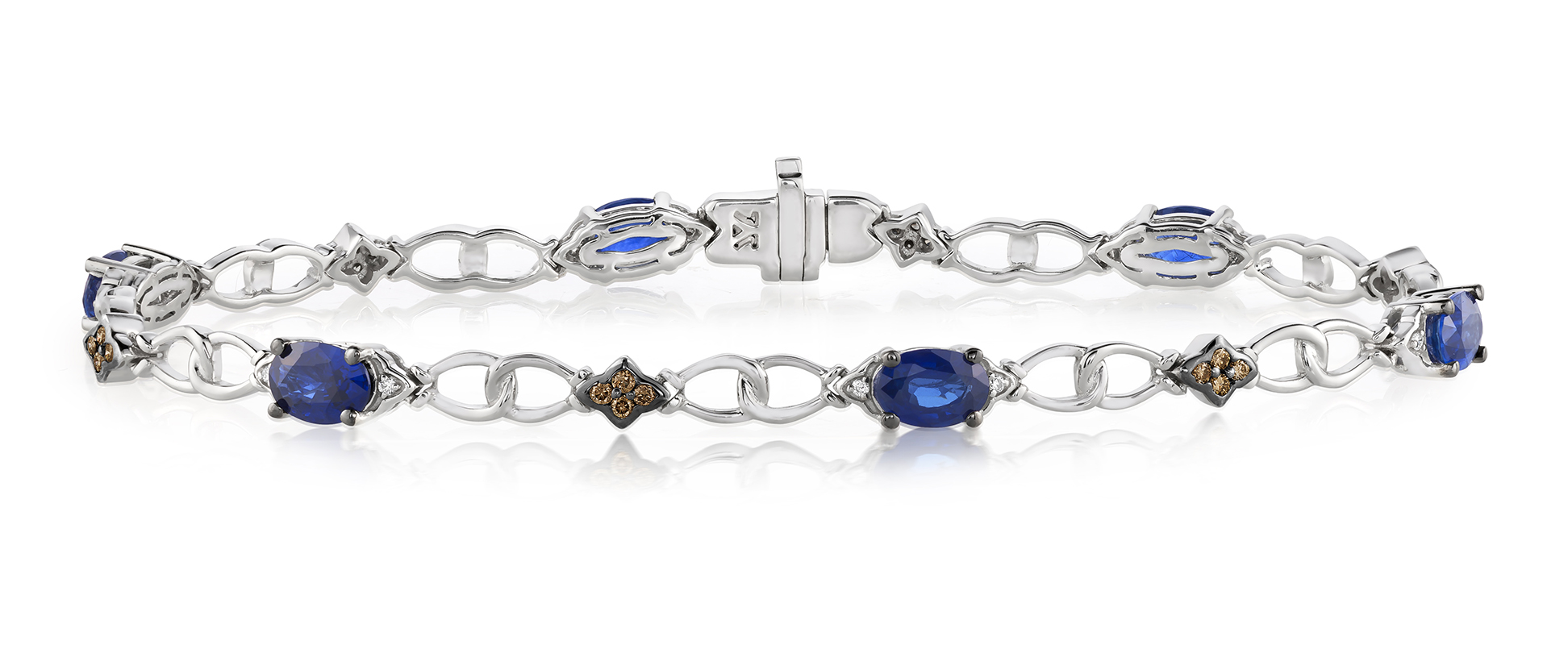 Le Vian’s 14-karat white gold Chocolatier bracelet features blue sapphires, brown diamonds and white diamonds ($5,147).