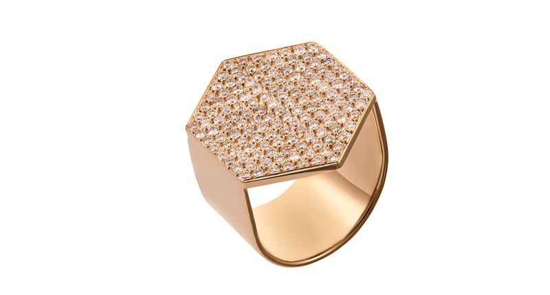 Karakostanoglou created various delicate lariats, pavé diamond-laden rings and a particularly stunning octagon hoop earring that is deceptively light for its size.