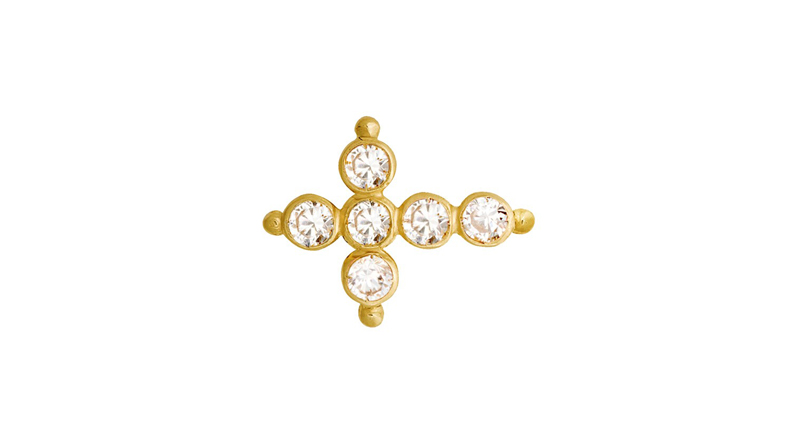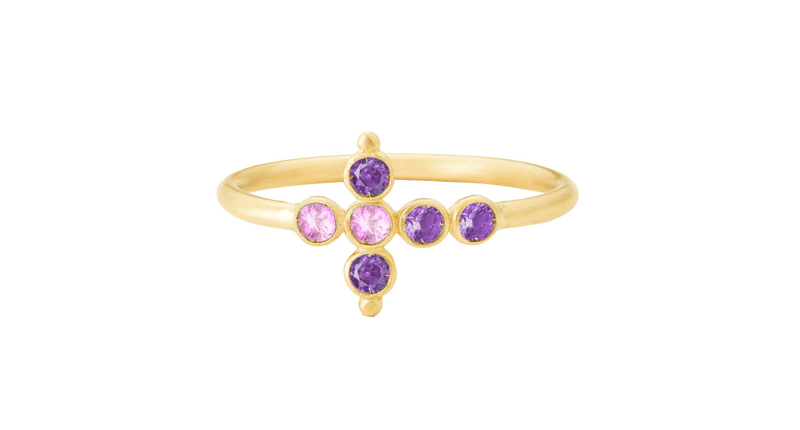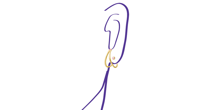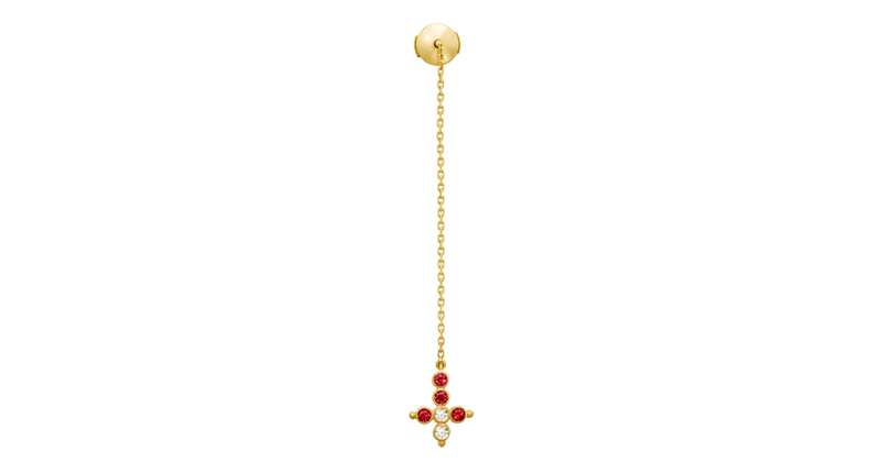 The “Liane” earring in 18-karat yellow gold with pink sapphires ($990)
