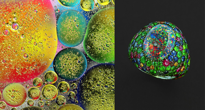This embrace of non-traditional materials, such as ceramic, wood, and even recycled metal from AK-47s, coupled with impressive gemstones is one of Taffin’s signatures, as is his embrace of color. His vividly hued ceramic bands, only created within the last year, have also developed into a Taffin trademark.