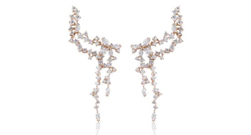 Much of Kaplan Gross’ jewelry consists of intricate groupings of diamonds that mimic clusters of flowers blooming on a vine. Indeed, the designer cites nature as her greatest source of visual inspiration.