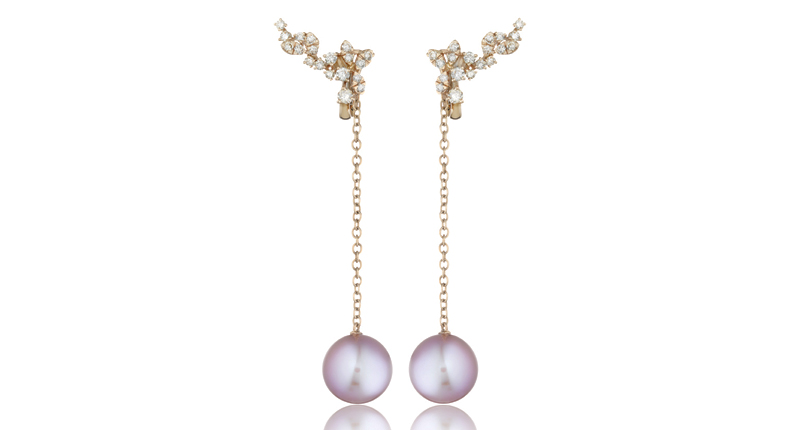 Lately, the jewelry designer also has branched into cleaner, more simplistic pieces in her “Perla” collection. It consists of pared-down designs that are just as feminine as Kaplan Gross’ ornate pieces: white, violet and pink pearls are set simply in 18-karat rose and yellow gold.