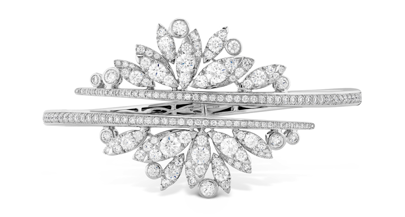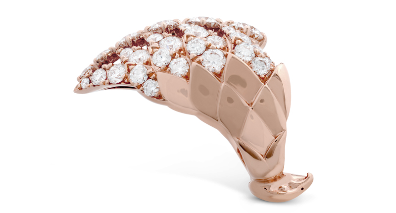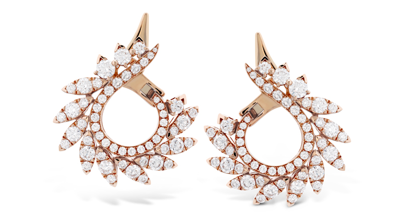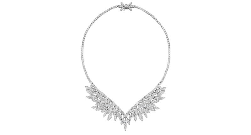 Reminiscent of a hawk’s plumage, White Kites sets round, Hearts On Fire diamonds in marquise shaped “feathers.” The collection consists of 36 styles comprised of collars, bracelets, rings and earrings in 18-karat white and rose gold.
