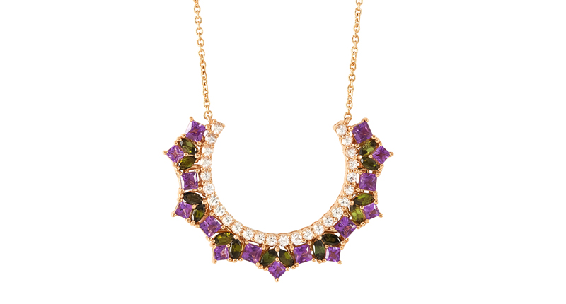 An affordable gemstone, amethyst is ideal for designers to create large-scale, bold pieces.