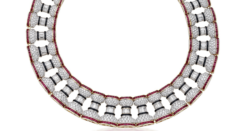 The retrospective includes the Colonna Romana ruby and diamond necklace (pictured above) from the 1980s.